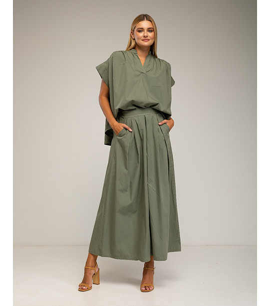 Fustă-pantaloni largi pentru femei din bumbac, culoare kaki