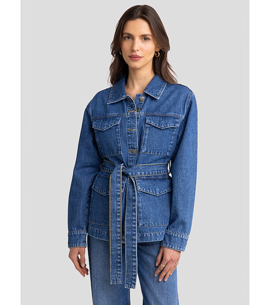 Geacă albastră din denim pentru femei cu curea CHELSEY
