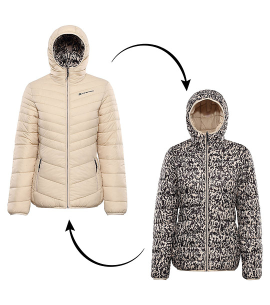 Alpine Pro Geacă de iarnă pentru femei cu două straturi în bej și negru EROMA Geacă de iarnă ultraușoară cu glugă