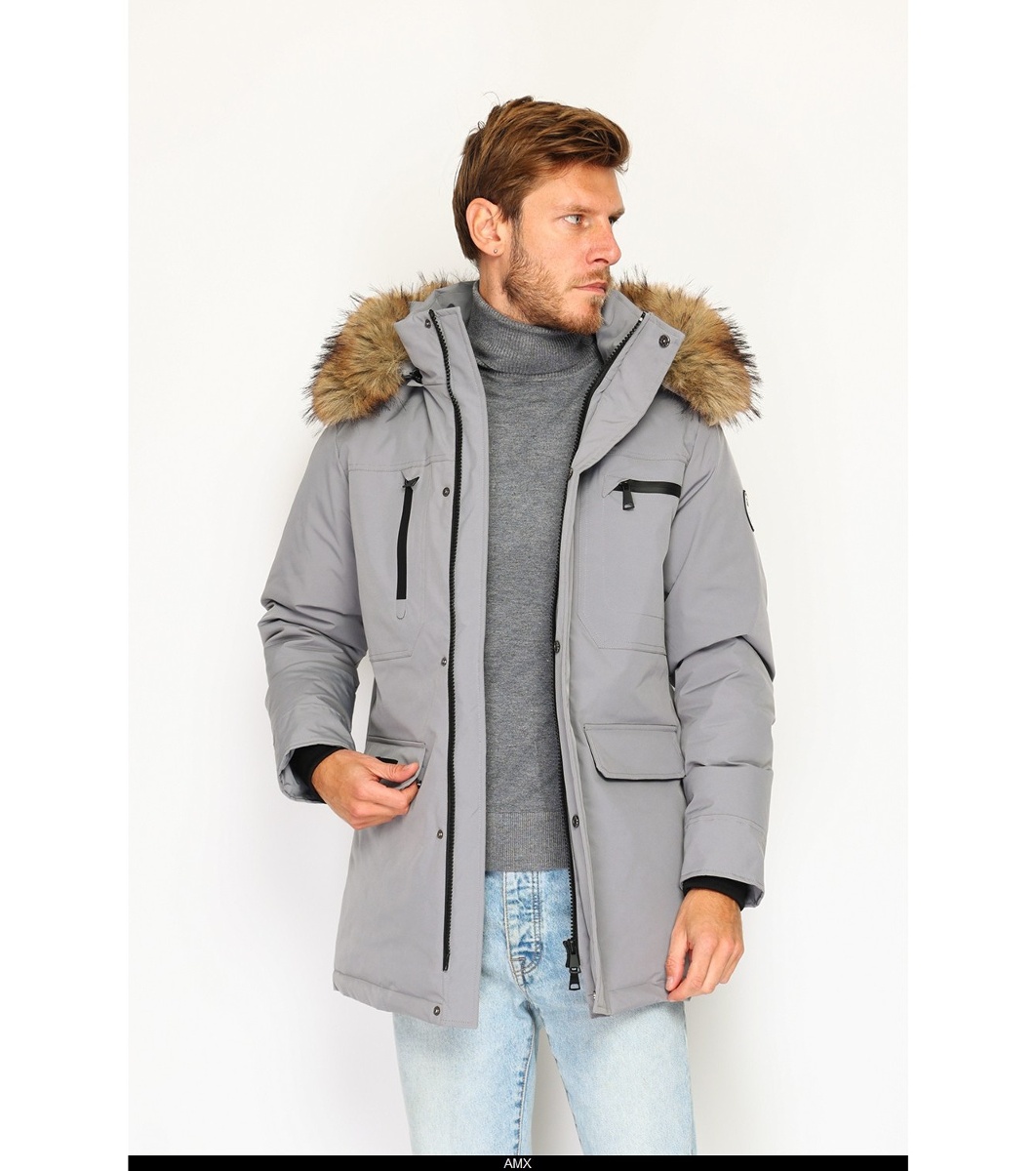 William de Faye Geacă lungă de iarnă gri pentru bărbați