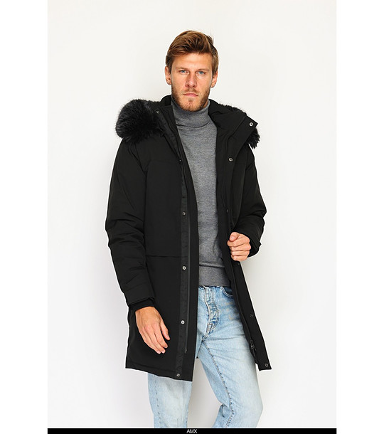 Geacă lungă de iarnă neagră pentru bărbați