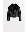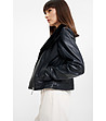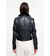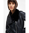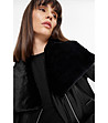 Geacă neagră de damă din piele ecologică cu guler din puf