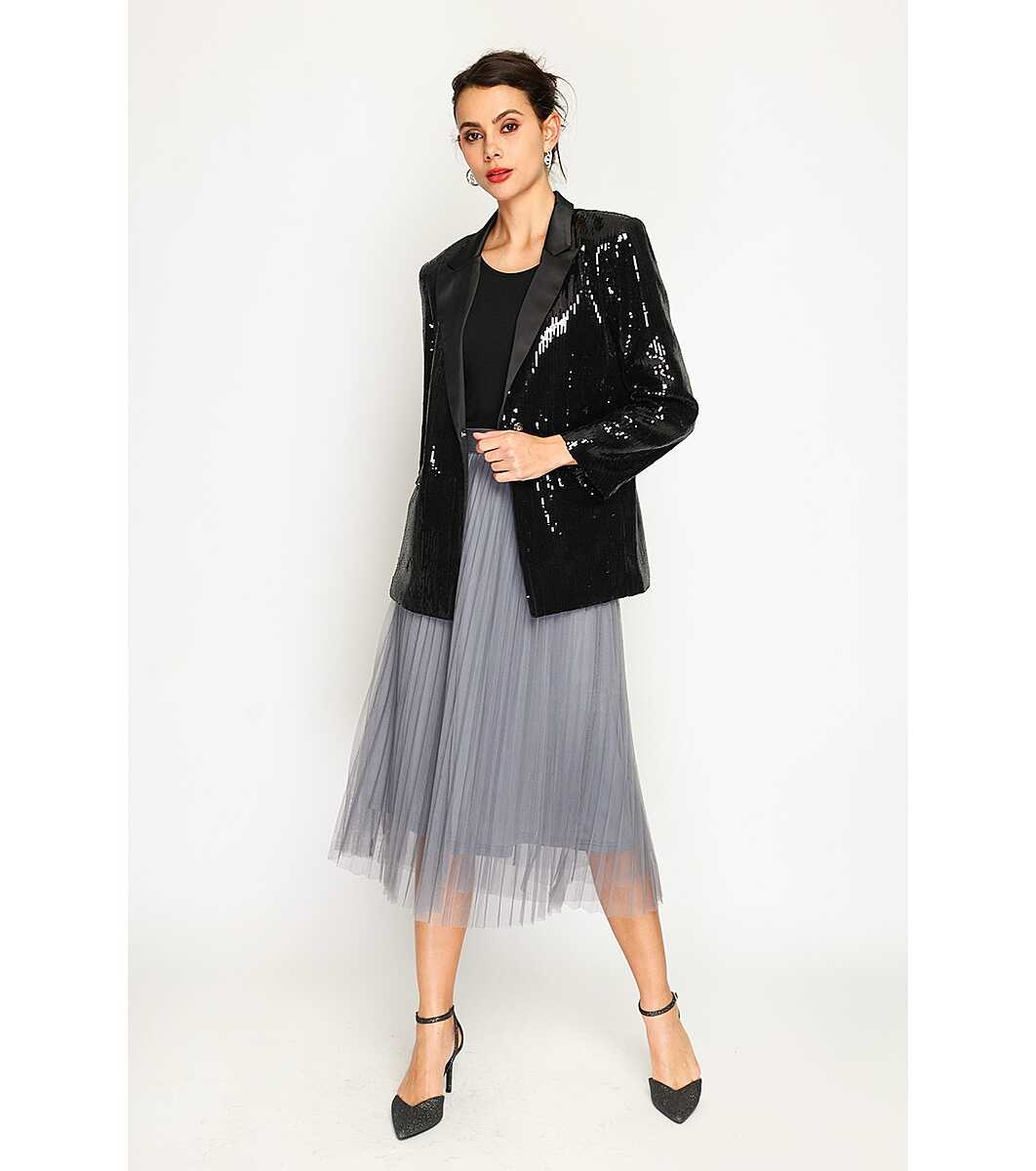 Assuili Geaca de dama neagra cu paiete Noya Guler și revere