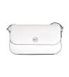 Geantă elegantă de damă cu emblemă metalică pe față și închidere magnetică. Are o curea de umăr reglabilă și un design compact, potrivită pentru utilizarea zilnică.