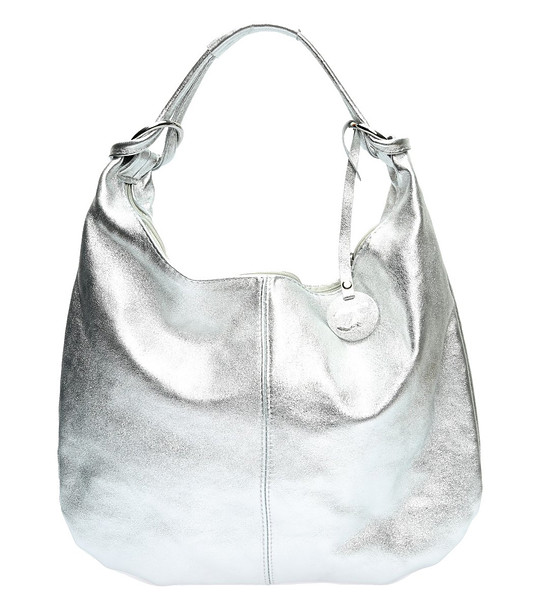 Geantă de damă argintie din piele naturală