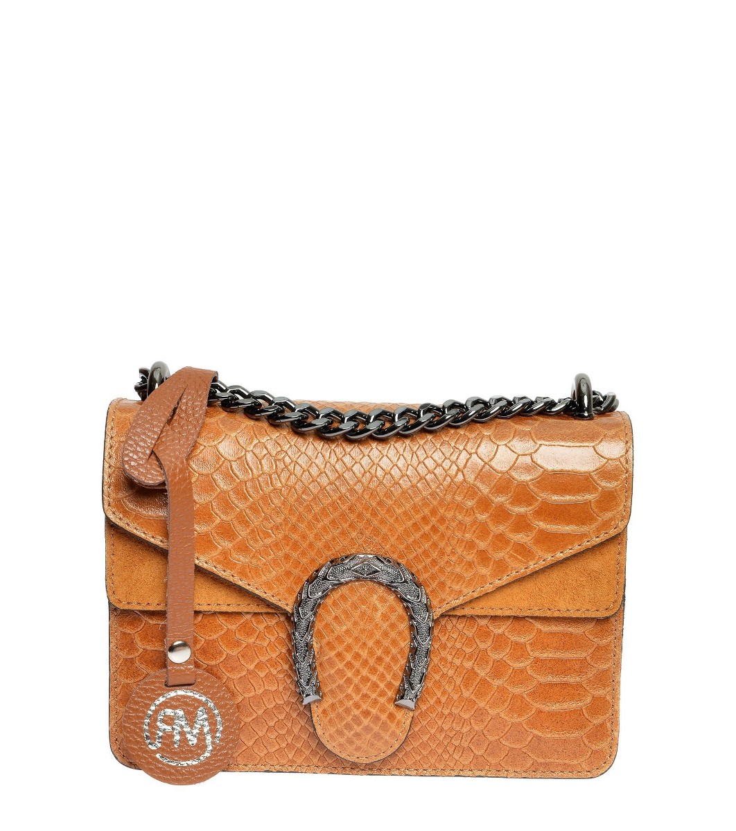 Roberta M Geantă de damă cu model Rikita în relief croco, de culoare coniac curea cu lanț, lungime 110 cm