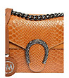Geantă de damă cu model Rikita în relief croco, de culoare coniac