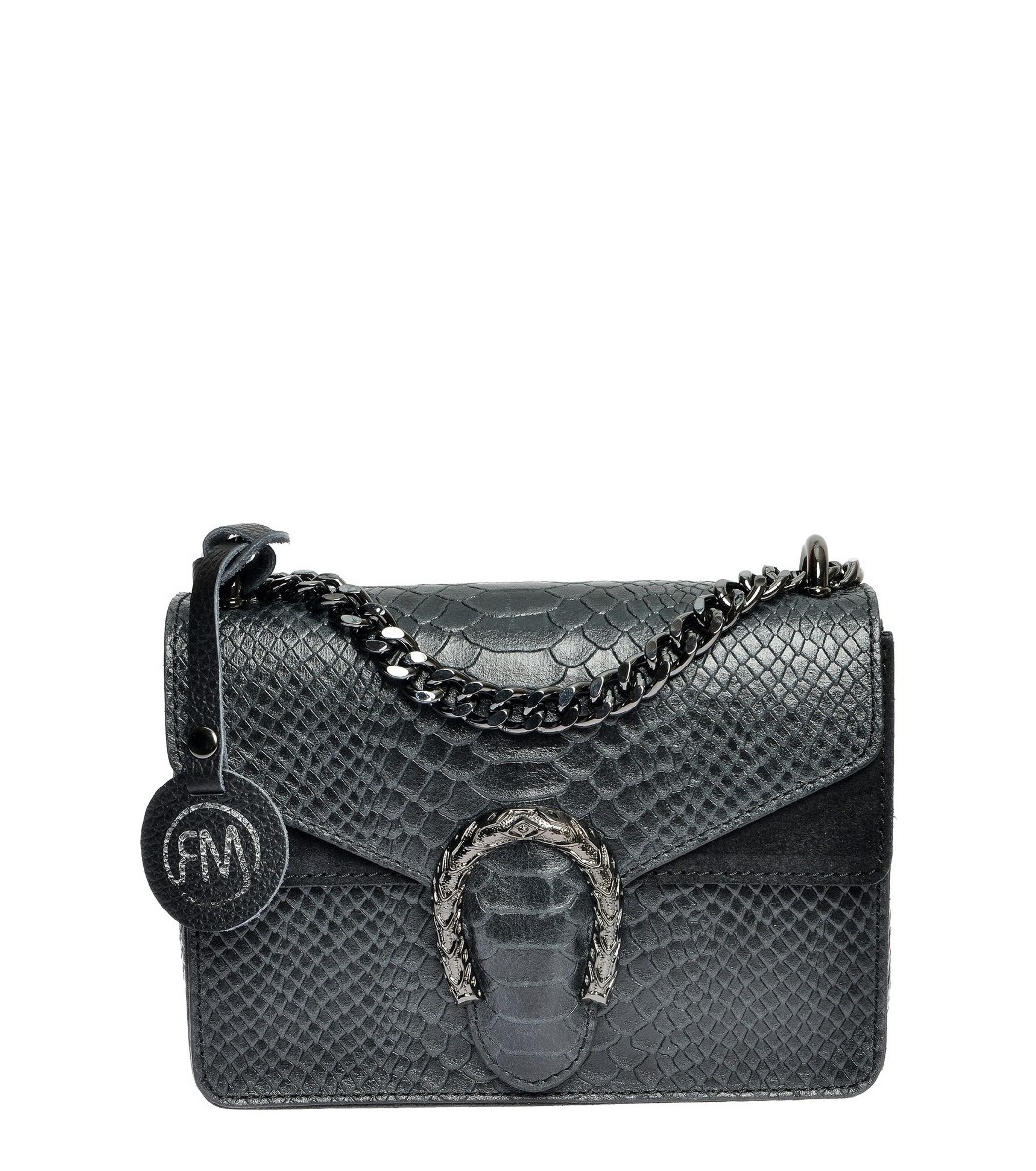 Roberta M Geantă de damă cu model Rikita în relief croco, de culoare neagră Curea tip lanț cu o lungime de 110 cm