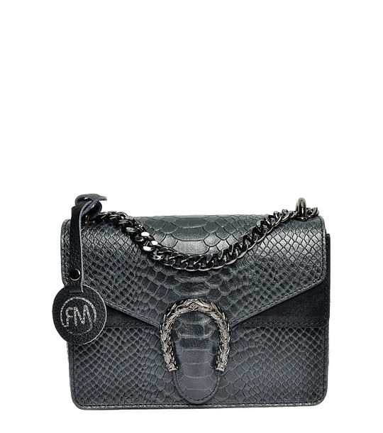 Geantă de damă cu model Rikita în relief croco, de culoare neagră