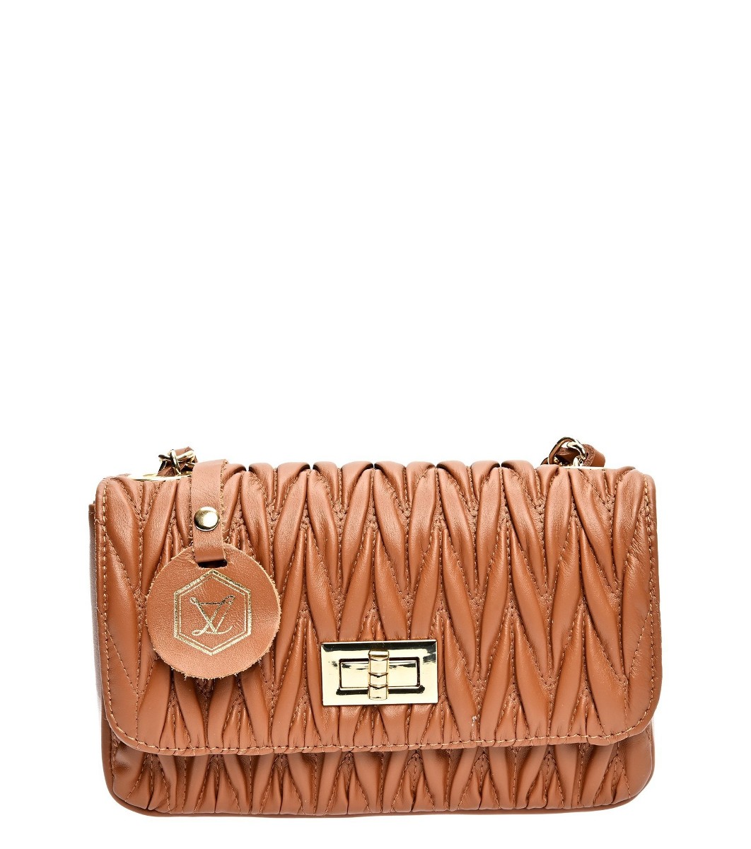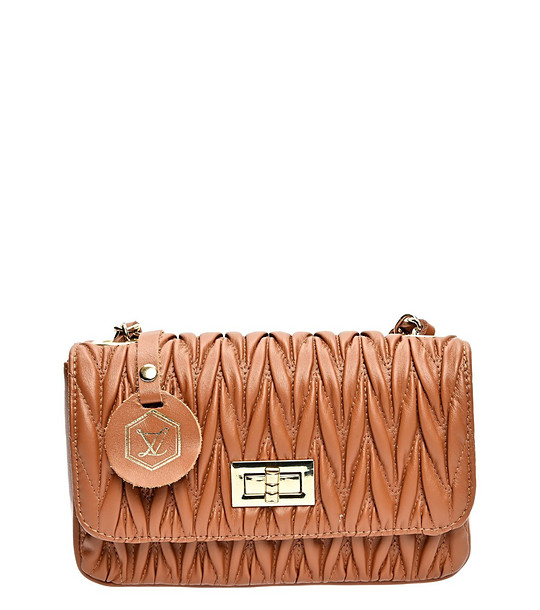 Geantă de damă cu relief spectaculos în culoarea coniac Sia