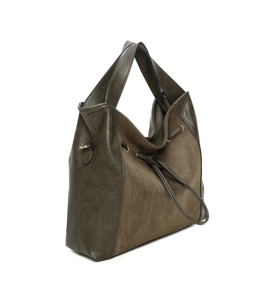 Ines Delaure Geantă de damă de culoare kaki Două mânere scurte pentru purtare în mână sau pe umăr.