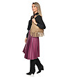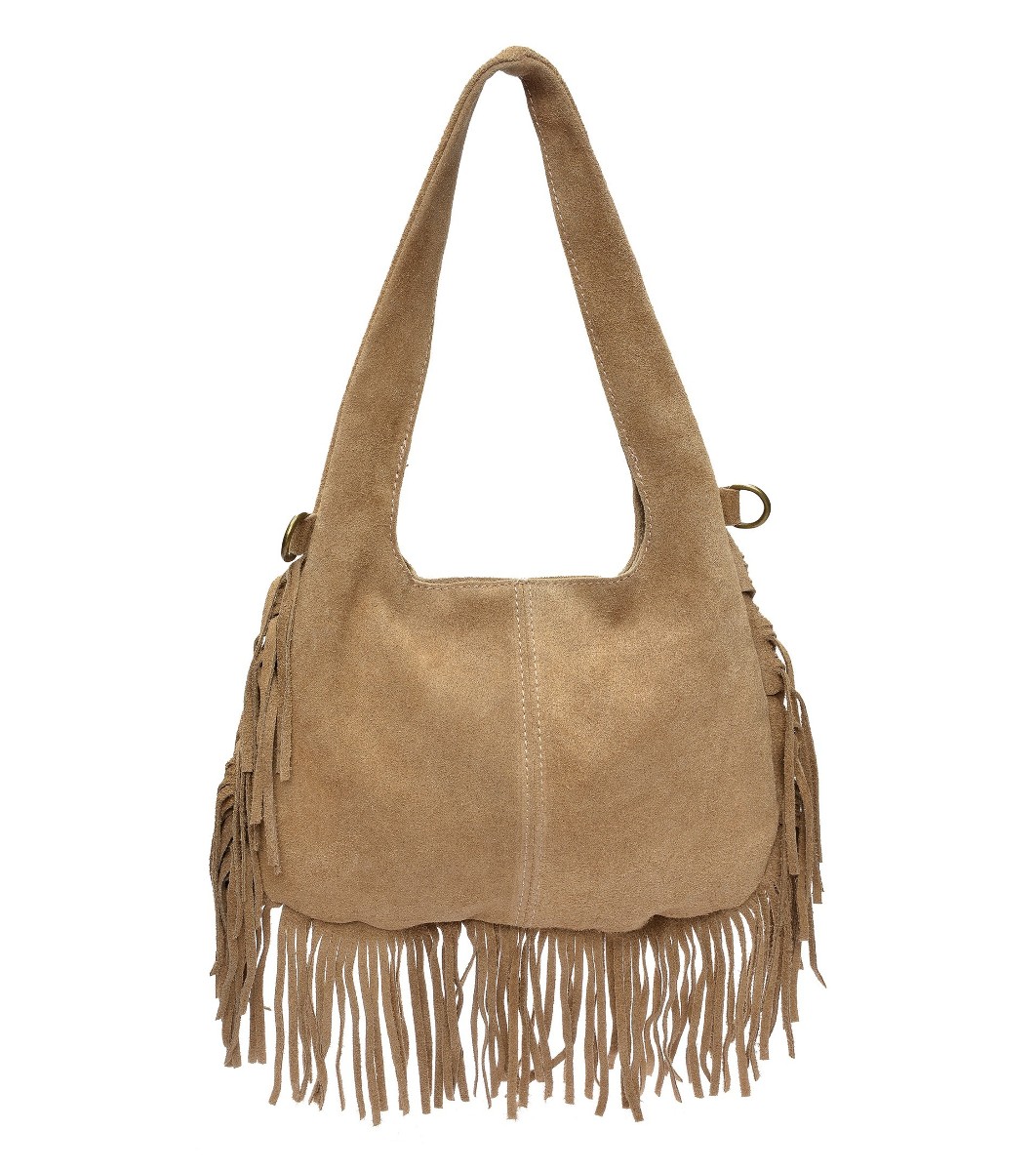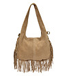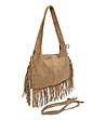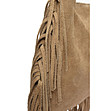 Geantă de damă de culoare taupe cu franjuri din piele întoarsă naturală