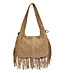 Isabella Rhea Geantă de damă de culoare taupe cu franjuri din piele întoarsă naturală Mâner scurt