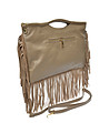 Geantă de damă de culoare taupe, din piele naturală cu franjuri