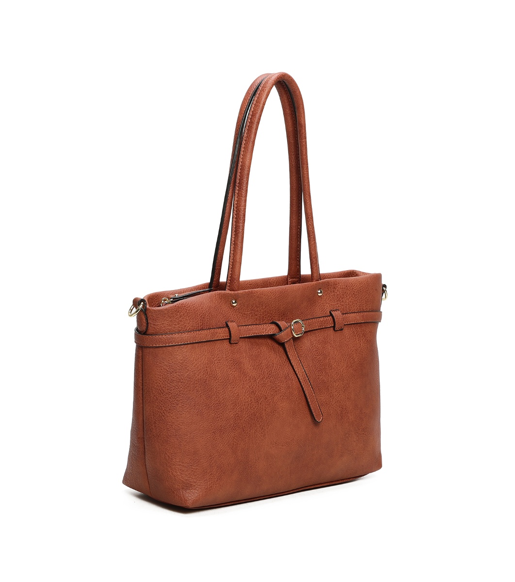 Ines Delaure Geantă de damă de culoarea cămilă cu mânere lungi Geantă mare