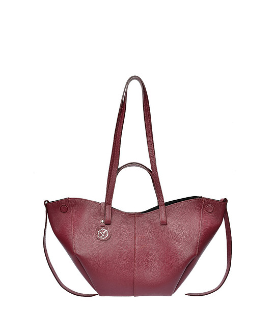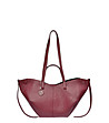 Geantă de damă din piele bordo cu un design atipic