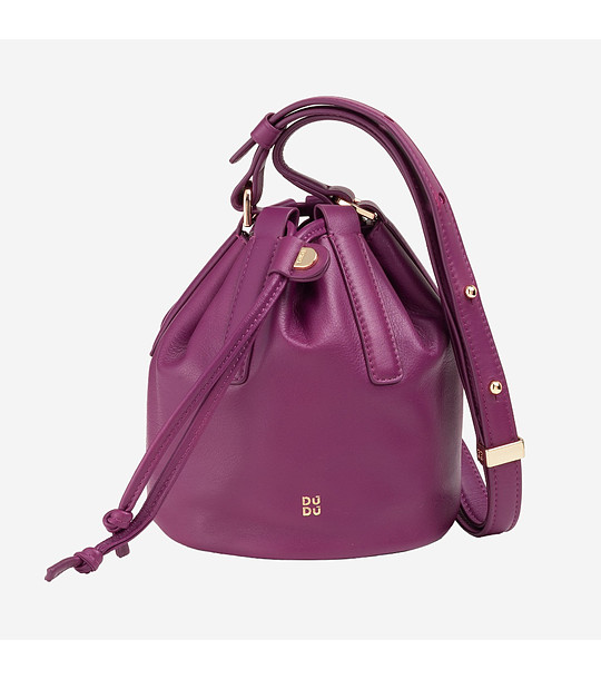 DuDu Geantă de damă din piele de culoare fuchsia Filicudi Geantă mică de damă cu fund rigid și formă cilindrică.