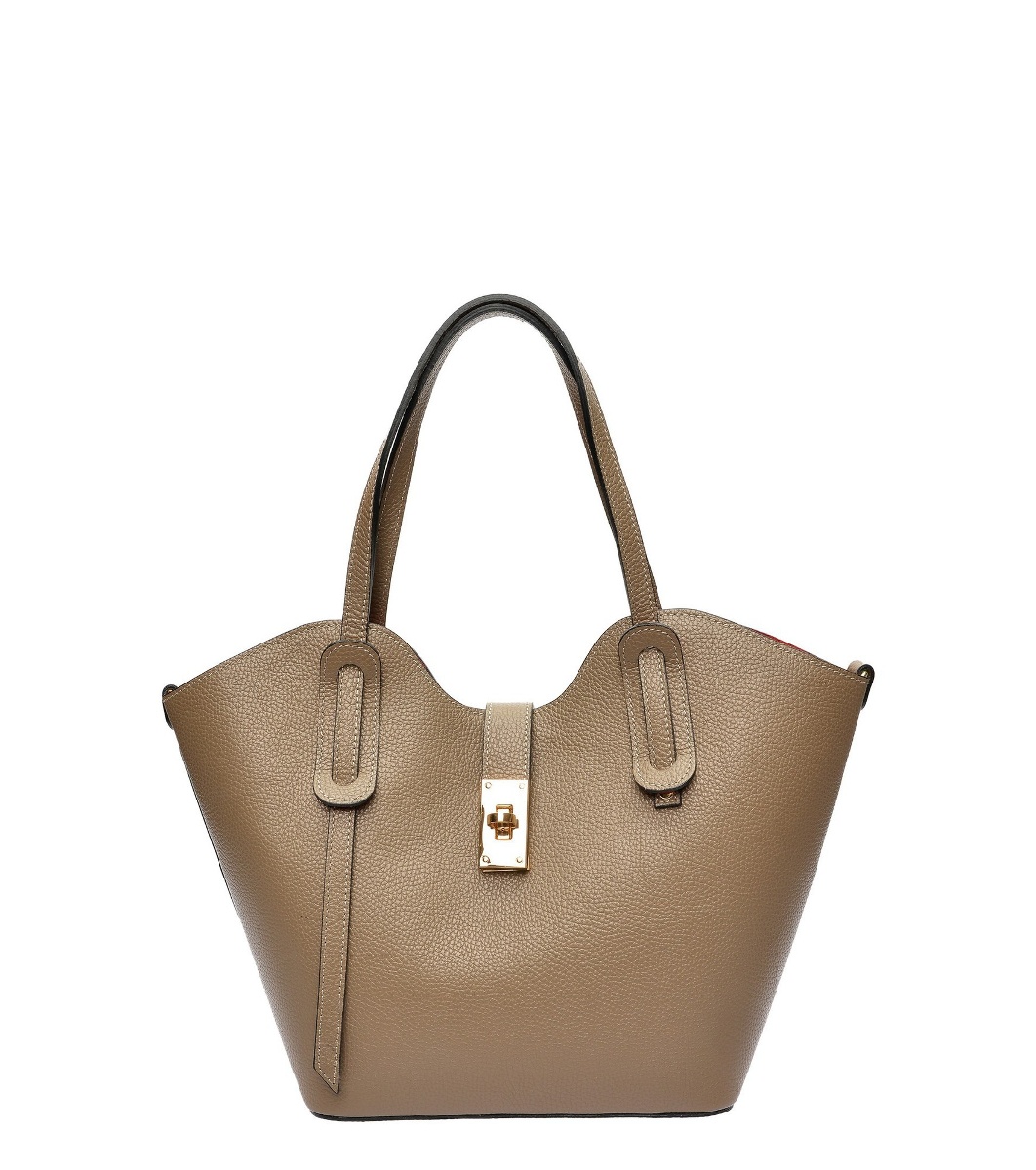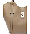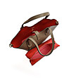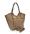 Geantă de damă din piele de culoare taupe cu geantă de toaletă roșie