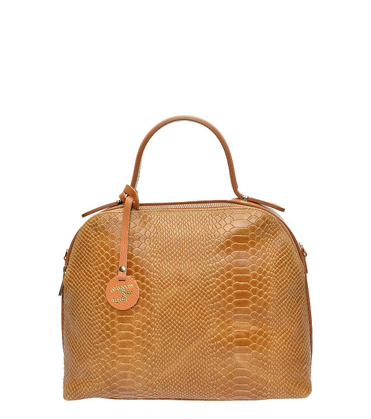 Carla Ferreri Geantă de damă din piele maro cu relief croco Mâner: 30 cm