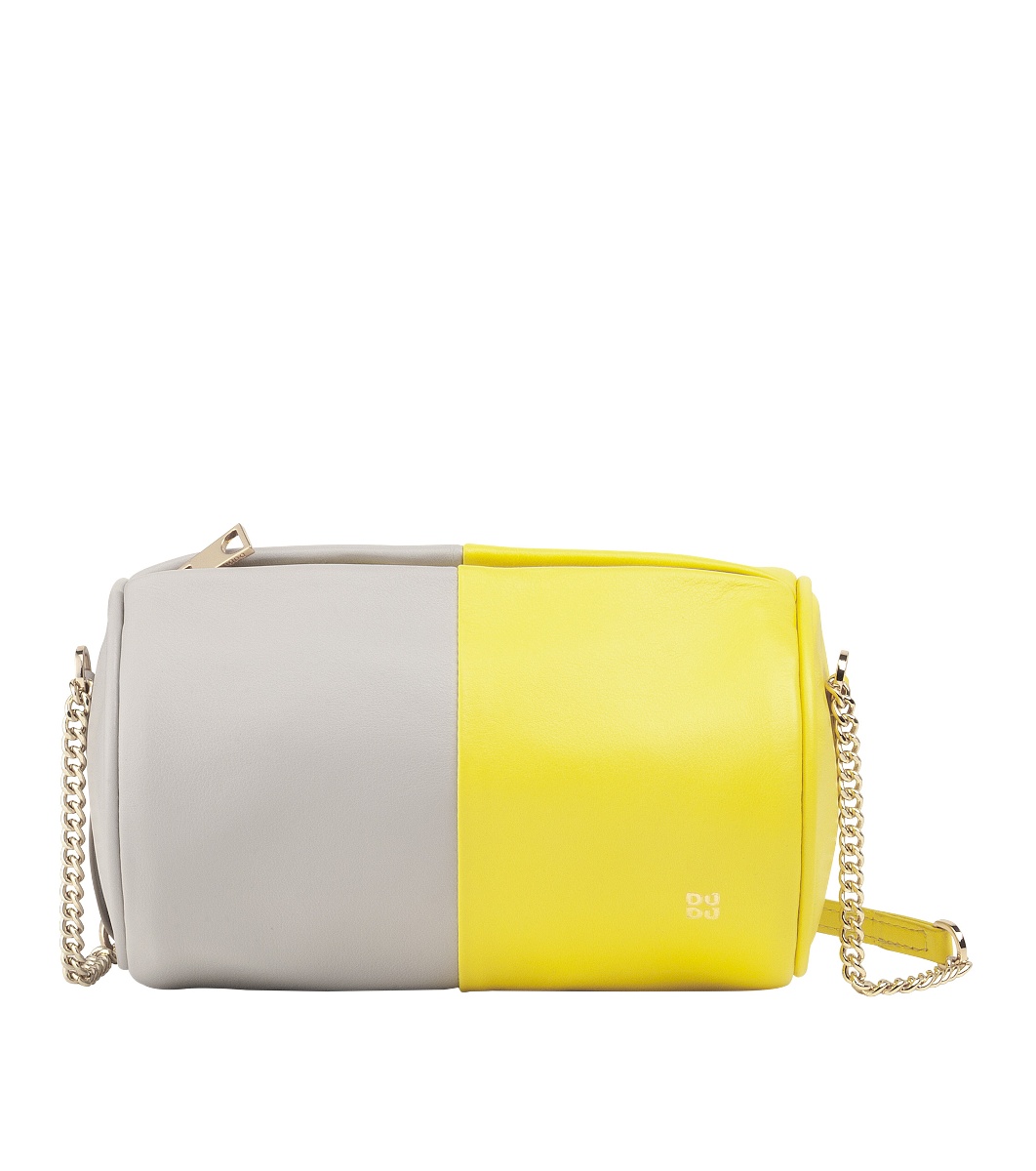 DuDu Geantă de damă din piele în culorile galben și gri Abigail