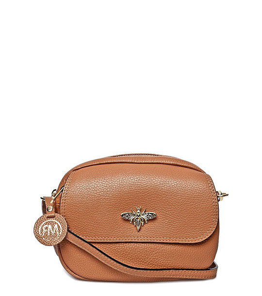 Geantă de damă din piele naturală de culoarea coniacului
