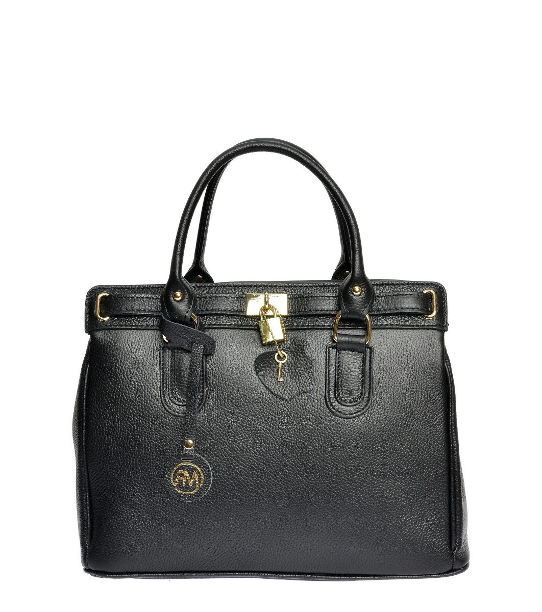 Roberta M Geantă de damă din piele neagră Zita Două mânere scurte cu o lungime de 31 cm
