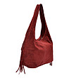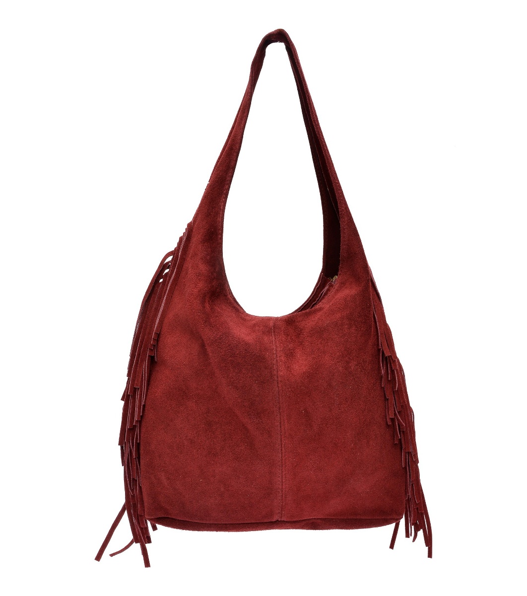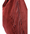 Geantă de damă din piele întoarsă bordo cu franjuri