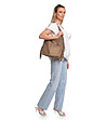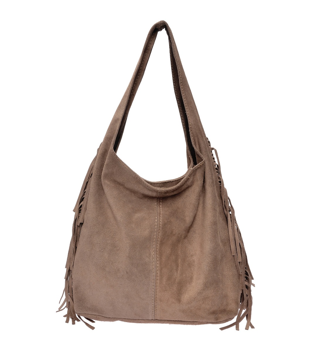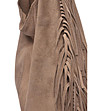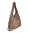Geantă de damă din piele întoarsă, de culoare taupe, cu franjuri