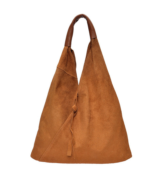 Geantă de damă din piele întoarsă, de culoarea coniacului