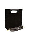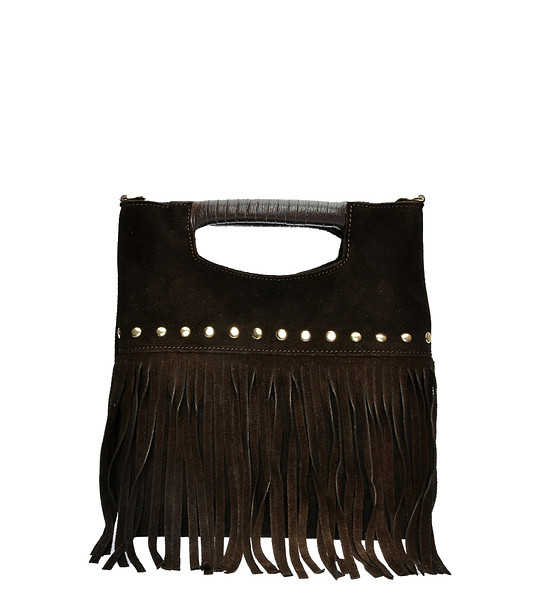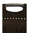 Geantă de damă din piele întoarsă maro închis cu franjuri
