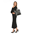 Geantă de damă din piele trapezoidală neagră