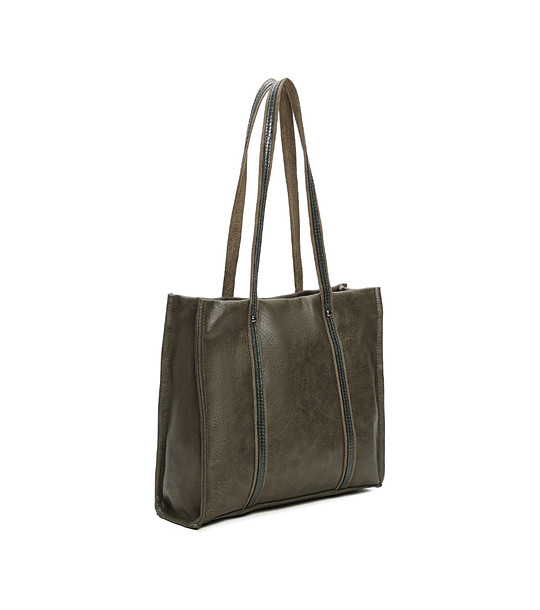 Geantă de damă kaki cu mânere lungi
