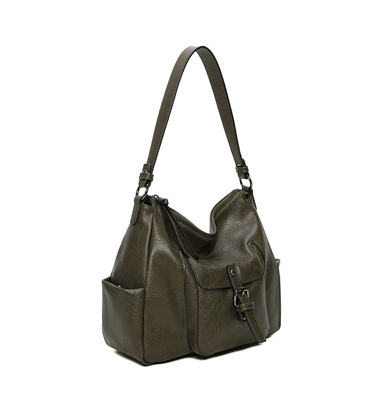 Ines Delaure Geantă de damă kaki cu multe buzunare Mâner lung