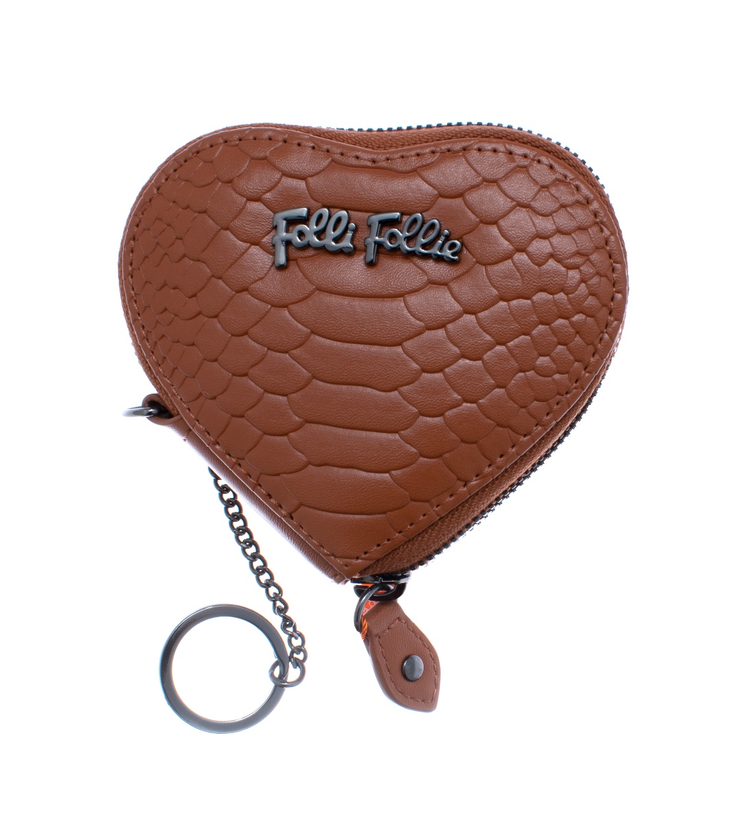 Geantă în formă de inimă cu design în relief și fermoar. Prevăzută cu lanț metalic și inel pentru transport ușor.
