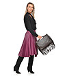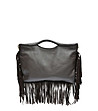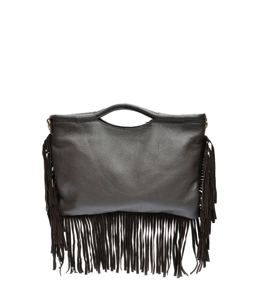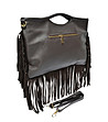 Geantă de damă maro închis din piele naturală cu franjuri