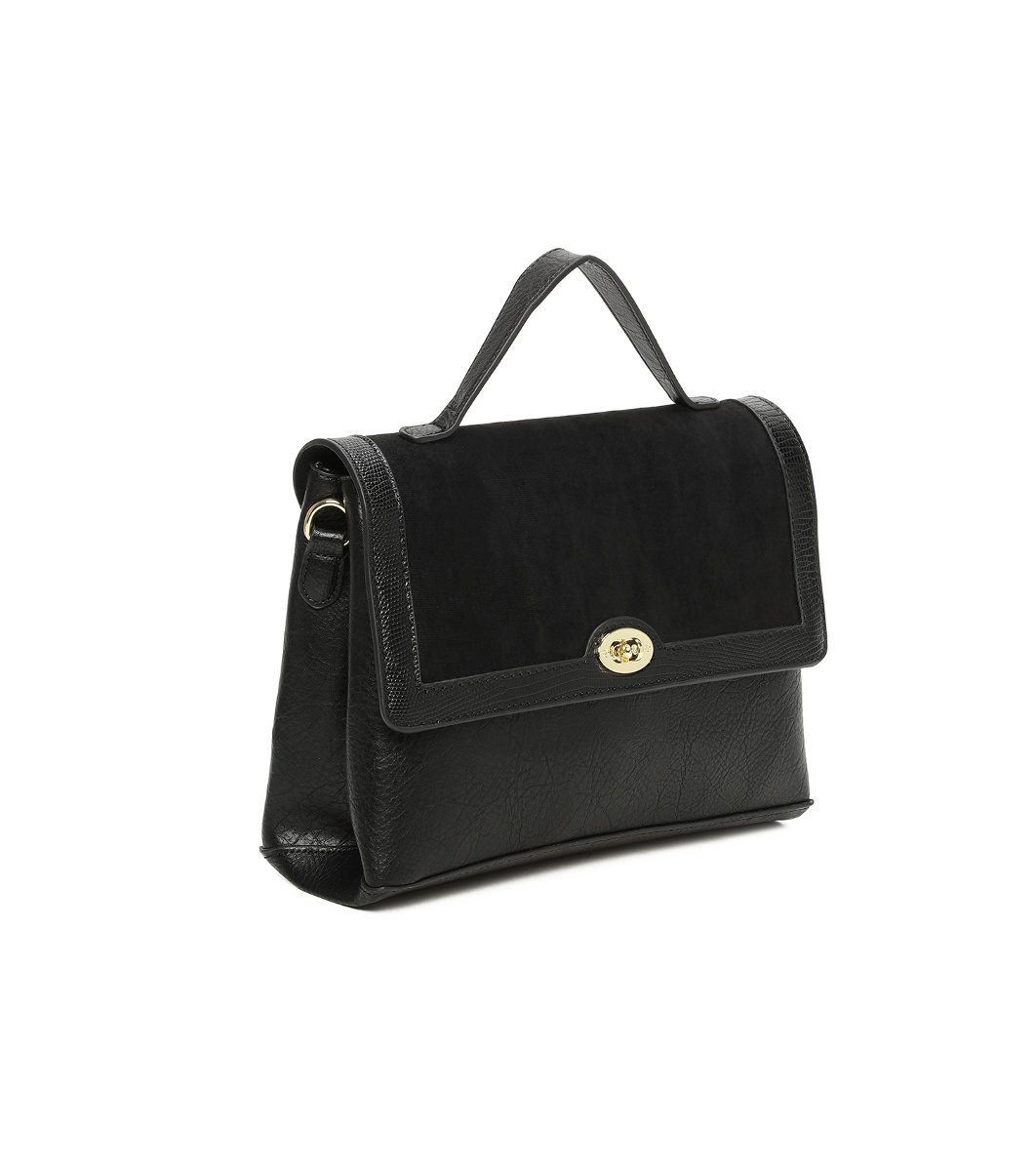 Ines Delaure Geantă de damă neagră cu clapă Geantă cu un mâner scurt