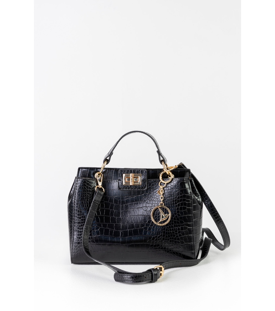 Geantă de damă neagră cu relief croco Deni