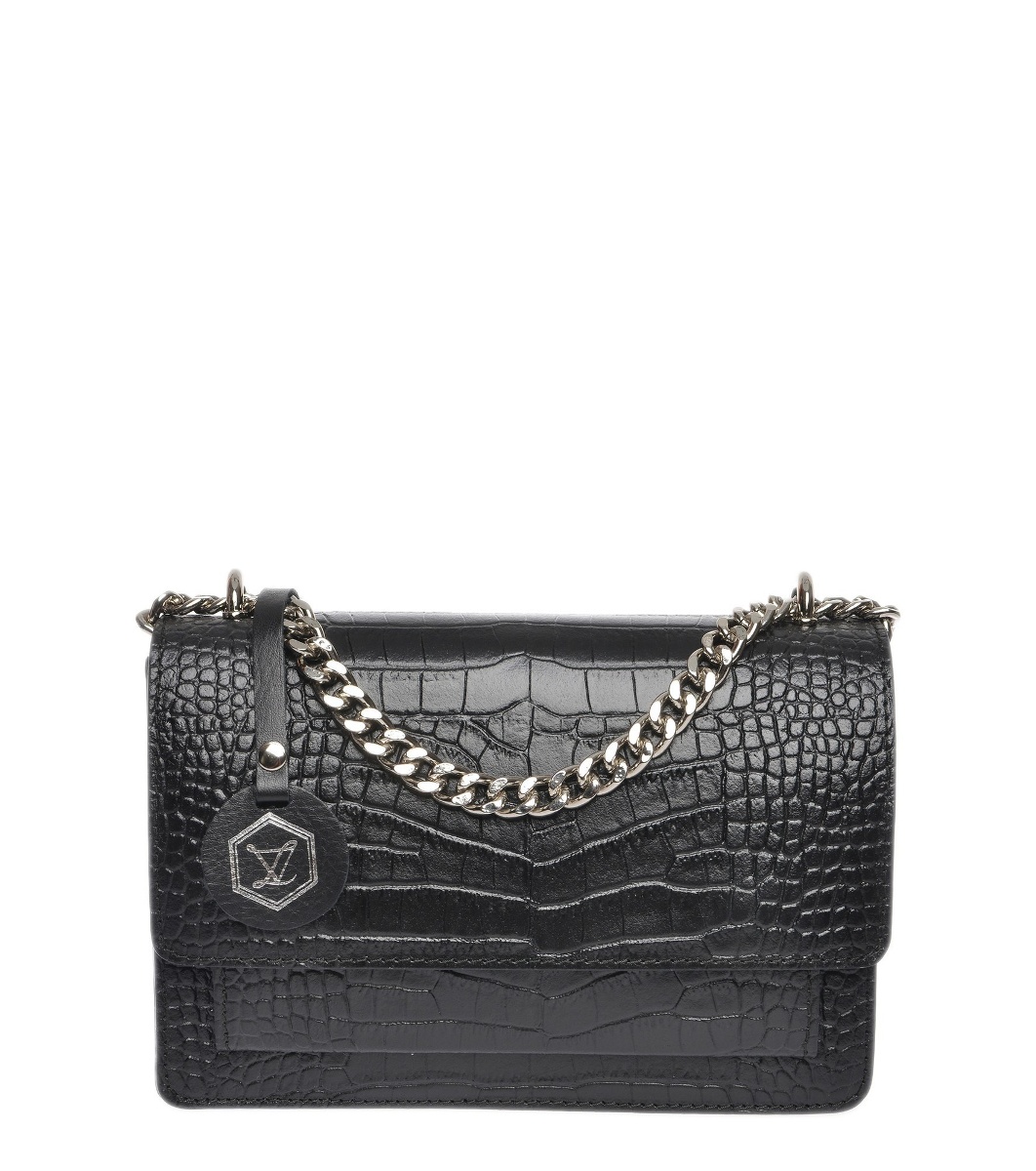 Luisa Vannini Geantă de damă neagră din piele cu relief Reia Lungime curea 120 cm