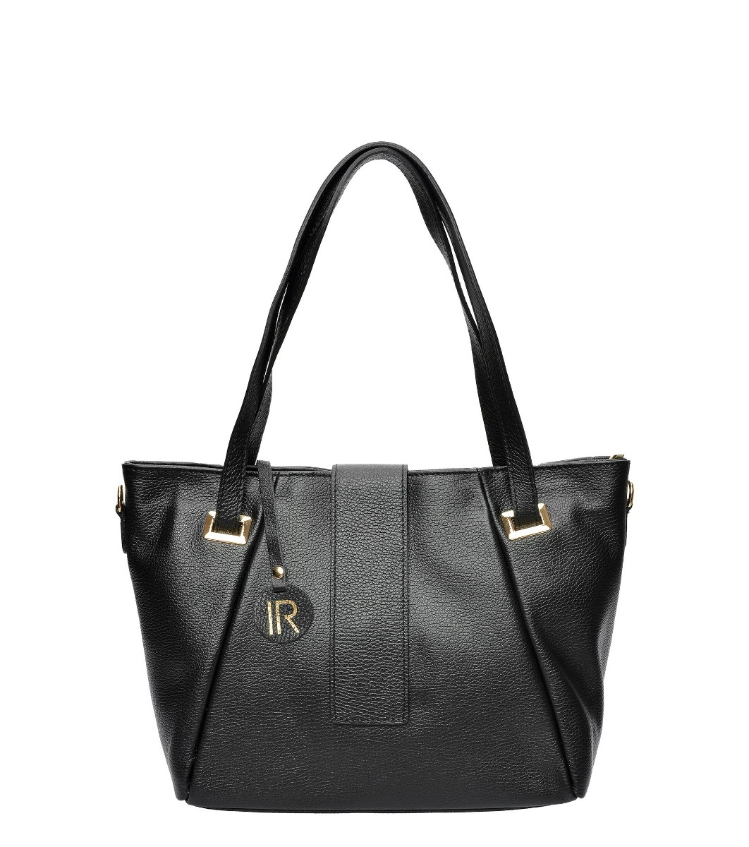 Isabella Rhea Geantă de damă neagră din piele naturală Două mânere lungi 53 cm