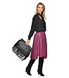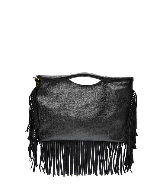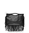 Isabella Rhea Geantă de damă neagră din piele naturală cu franjuri Mâner cu o lungime de 13,5 cm