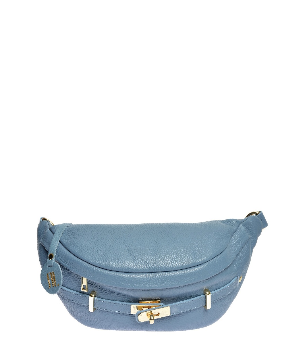 Anna Luchini Geantă de damă tip baghetă din piele, în nuanță albastră, Nora Un compartiment principal cu fermoar