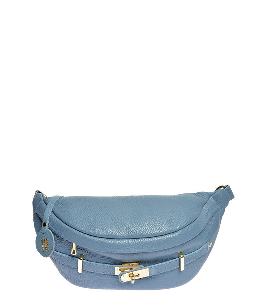 Geantă de damă tip baghetă din piele, în nuanță albastră, Nora