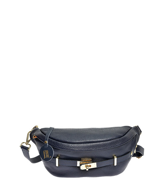 Geantă de damă tip baghetă din piele, în nuanță albastru închis, Nora