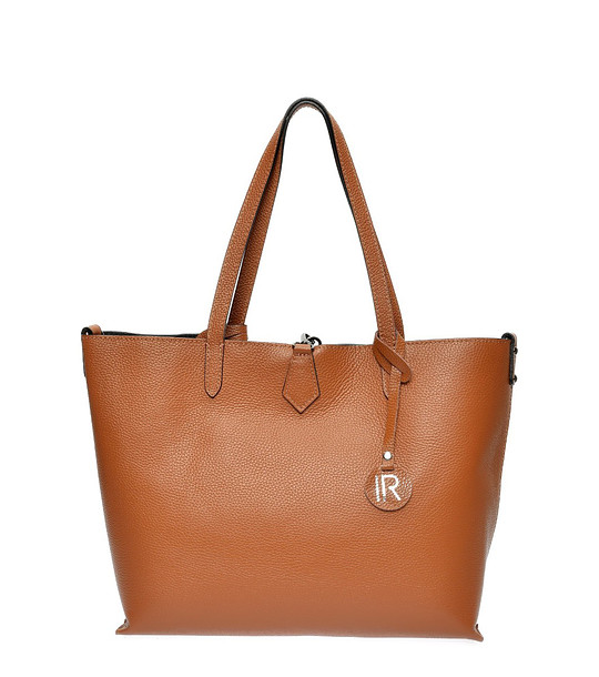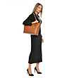 Geantă de damă trapezoidală din piele de culoarea coniacului