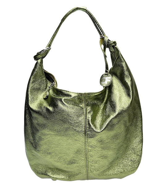 Geantă de damă verde din piele naturală Noya