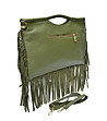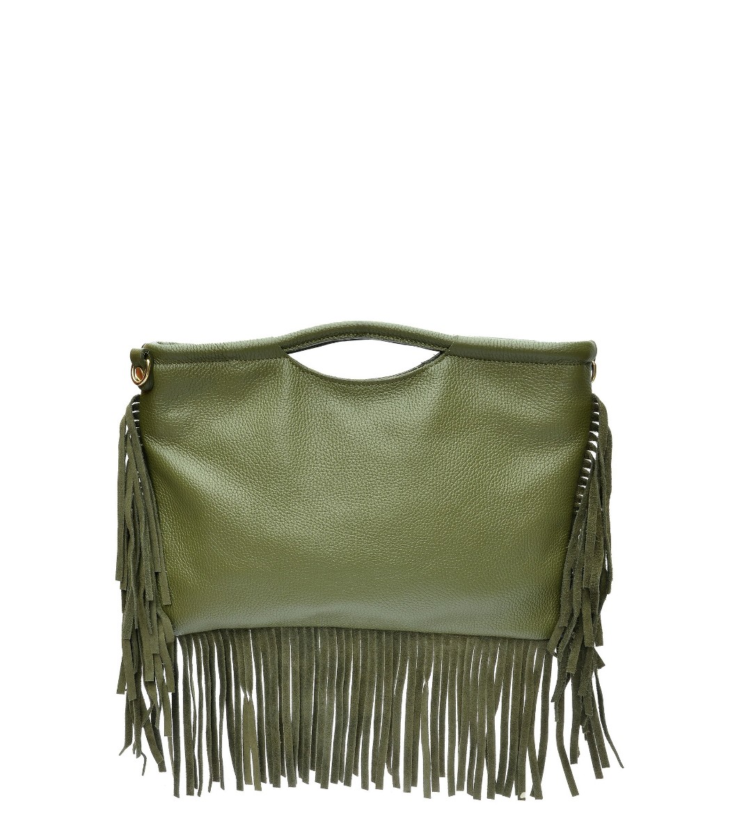 Isabella Rhea Geantă de damă verde din piele naturală cu franjuri Mâner cu o lungime de 13,5 cm