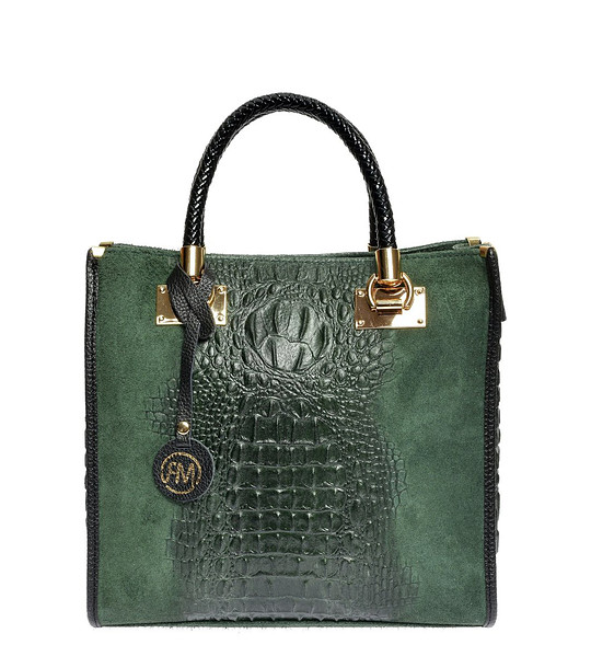 Roberta M Geantă de damă verde închis cu relief spectaculos Arina Două mânere scurte 34 cm