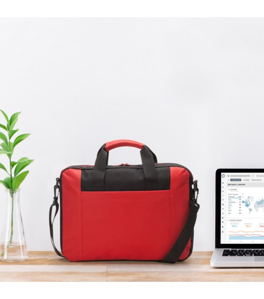 Stamina Geantă de laptop LORA în roșu și negru Geantă căptușită pentru documente pentru laptop, confecționată din poliester moale 600D, cu buzunar exterior.