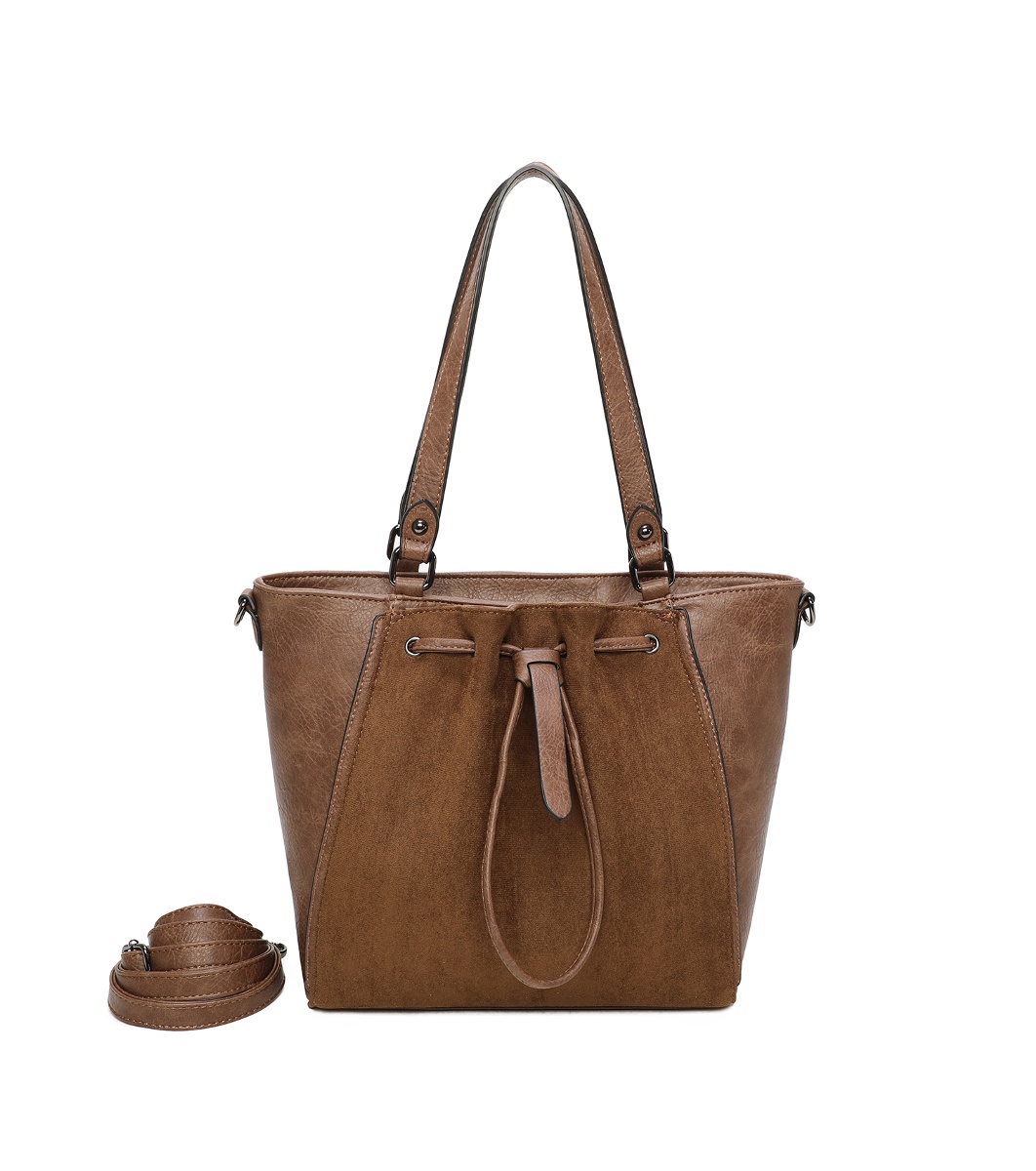 Ines Delaure Geantă de mână de culoarea cappuccino cu mânere lungi Două mânere lungi pentru purtare pe umăr.