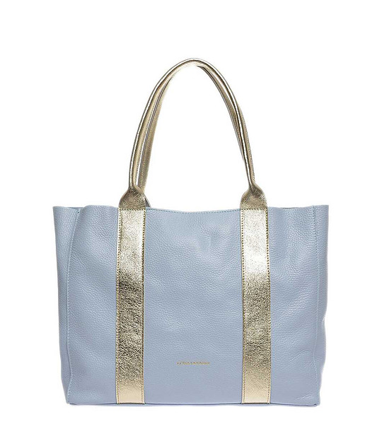 Luisa Vannini Geantă de mână din piele albastru deschis și auriu Două mânere 45 cm